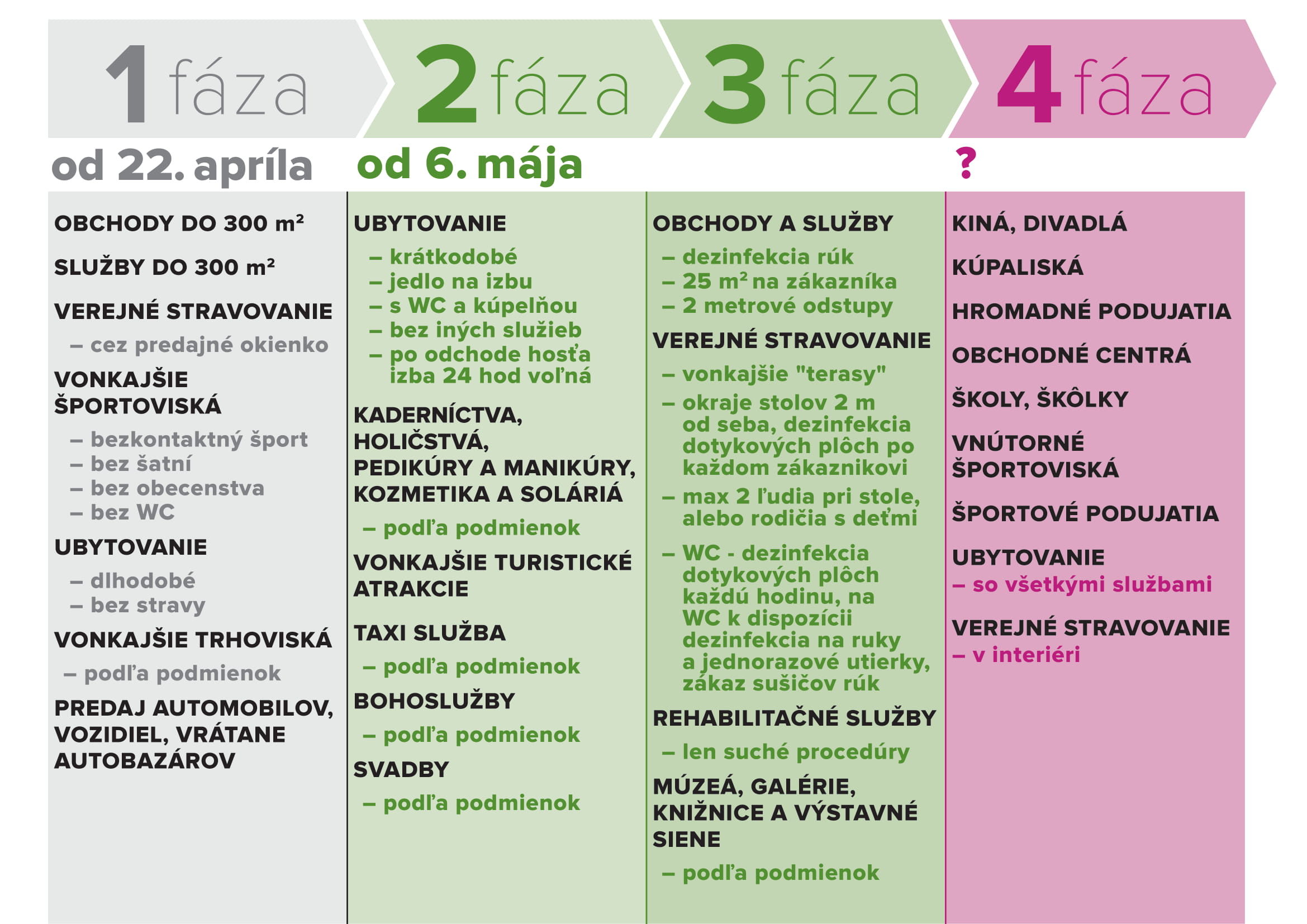 Detailnejšie vymedzenie prevádzok a služieb budú spresnené v najbližších dňoch po zverejnení oficiálneho opatrenia.