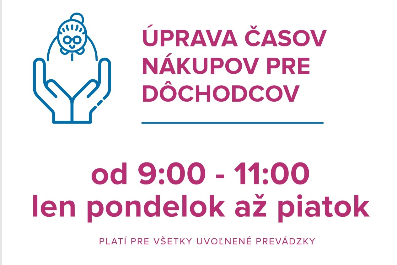 Mení sa aj úprava časov nakupovania pre dôchodcov. Čas sa skráti o hodinu, čiže od 9.00 do 11.00 hod a to od pondelka do piatka, no bude platiť pre všetky prevádzky. Premiér vyzval dôchodcov, aby do obchodov v inom čase nechodili!