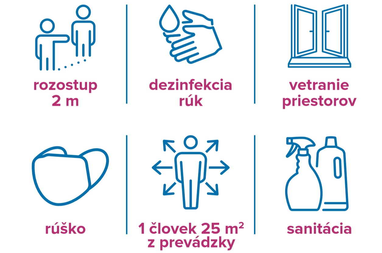 Stále platí dodržiavanie prísnych hygienických zásad, hlavný hygienik Mikas upozorňuje, že vstup do prevádzky bude možný len s rúškom a vydezinfikovanými rukami.