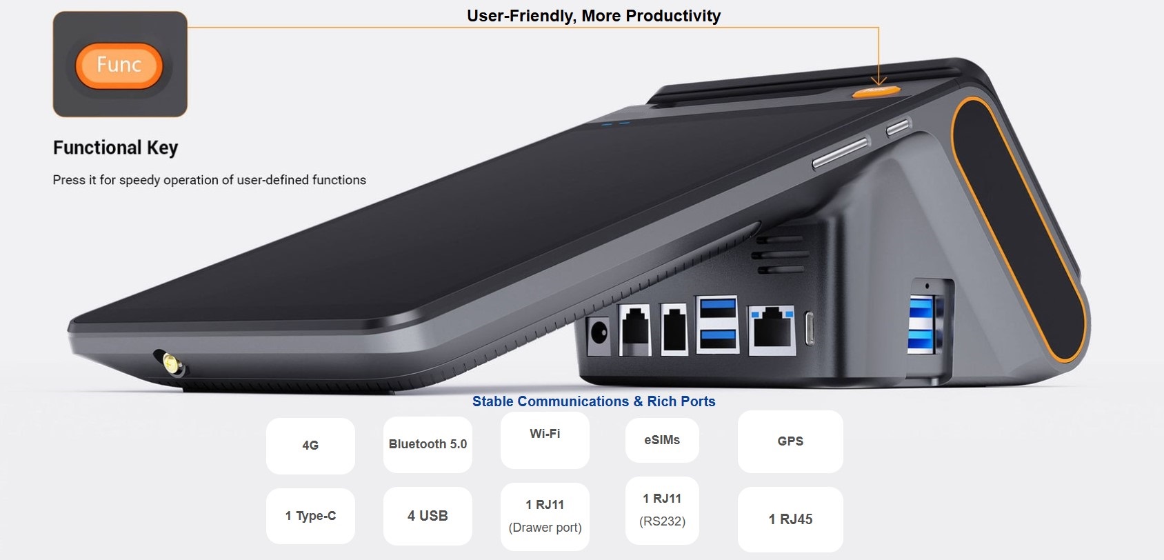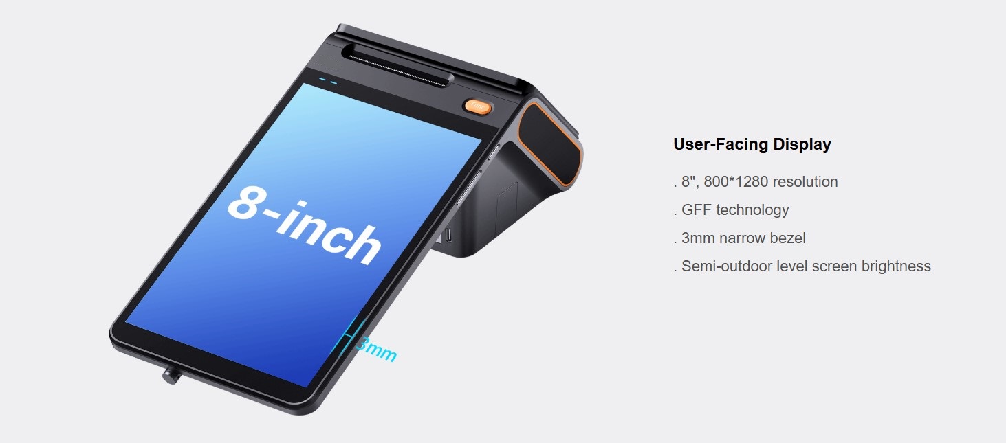 Certifikovaná mobilná pokladnička elio miniPOS A80 s atraktívnym vzhľadom, výkonnými funkciami a 8'' dotykovou obrazovkou. Obsahuje operačný systém Android 13 tlačiareň na 58 mm termo-papier s rýchlosťou tlače až 80mm/s a mobilné funkcie a to všetko v jednom zariadení .Disponuje pamäťou RAM 4GB a vnútornou pamäťou 64GB. S mobilným dátovým pripojením 4G , Wifi, bluetooth. Vynikajúce riešenie pre pokladnicu eKasa v cene s 8 GB CHDU a základnou verziou elio Kasa . CERTIFIKOVANÉ ! .Platobný terminál v jednom .