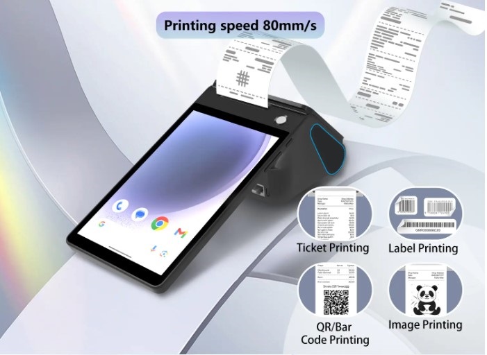 - Rýchla tlač: 58 mm vysokorýchlostná termálna tlačiareň s rýchlosťou tlače 80 mm/s, podporný štítok, účtenka, webová stránka, BT a ESC POS tlač