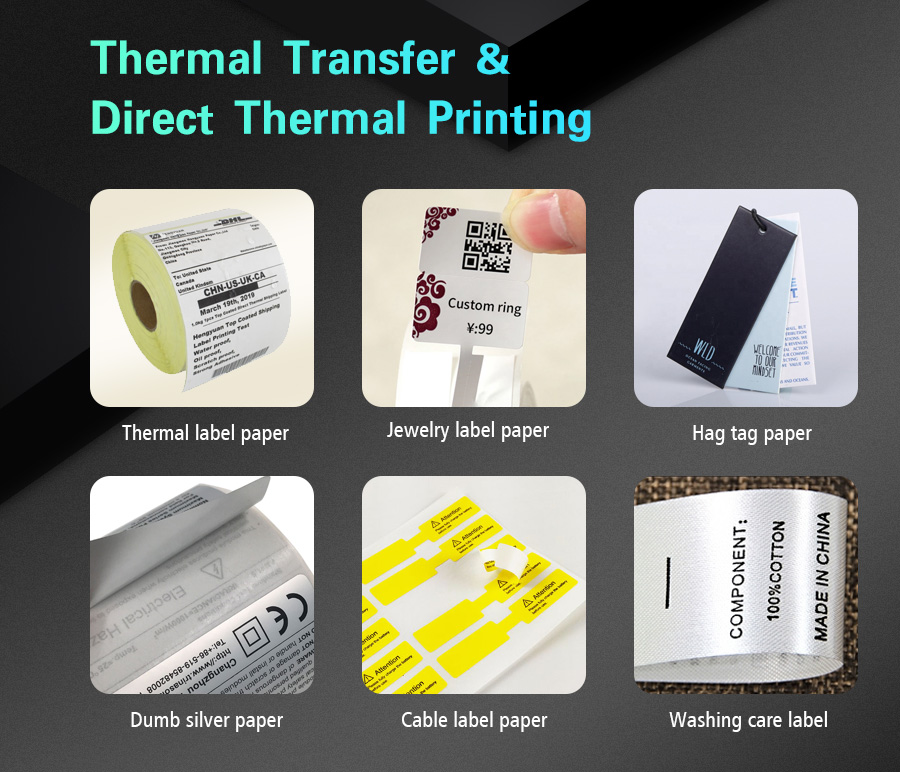 | Standard accessories | ①Windows labeling software,driver and user manual Cd ②quick start guide ③USB cable ④power cord ⑤external switching power adapter ⑥label spindle, fixing tab x 2 ⑦Ribbon spindle x 2 ⑧Ribbon paper core |